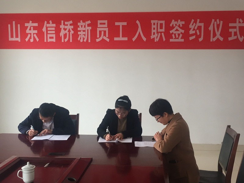 2018年11月30日下午3點(diǎn),新員工入職簽約儀式在泰安信橋二樓會議室舉行,公司副總石振偉與新員工李佳欣參加,同時(shí)公司財(cái)務(wù)總監(jiān)張燕與人事人員出席。