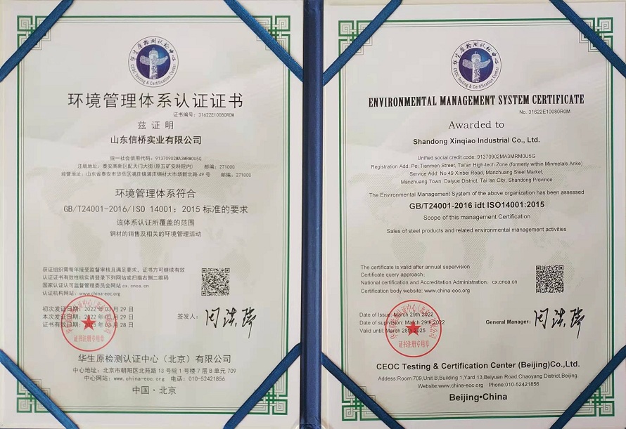 環(huán)境管理體系認證證書