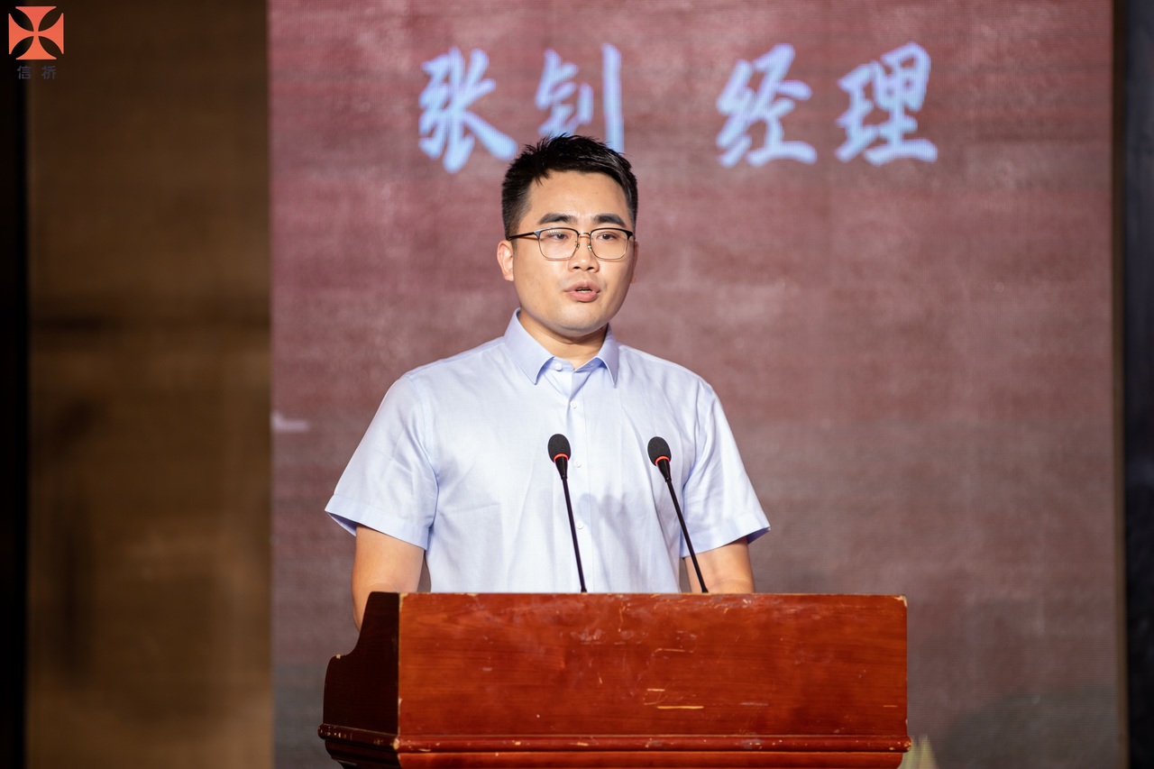 員工代表張釗講話(huà),他代表了中青一代的信橋人,感慨了信橋二十幾年的發(fā)展,感謝信橋給予他的財(cái)富和能力。