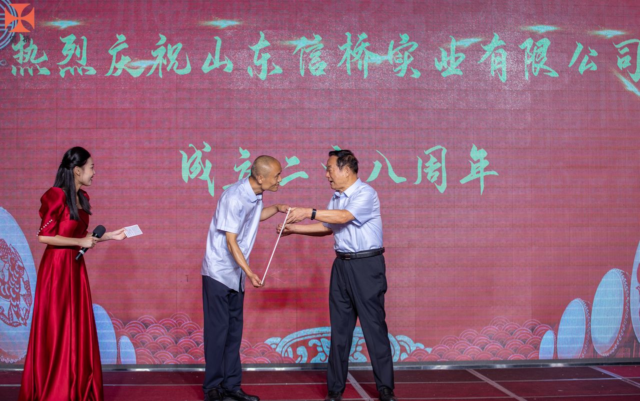 歲月如歌,風(fēng)霜如畫(huà),二十八年彈指一揮間,山東信橋?qū)崢I(yè)有限公司(以下簡(jiǎn)稱(chēng)山東信橋)迎來(lái)了二十八周歲的生日。二十八年來(lái),信橋人在激烈的市場(chǎng)競(jìng)爭(zhēng)中奮力拼搏、砥礪前行,接受了市場(chǎng)風(fēng)風(fēng)雨雨的洗禮,取得了累累碩果。為了慶祝這一特殊的日子,2022年8月8日,以“激流勇進(jìn),安定團(tuán)結(jié)謀發(fā)展 披荊斬棘,開(kāi)拓創(chuàng)新向未來(lái)”為主題的山東信橋二十八周年慶典活動(dòng)在寶盛大酒店舉行。